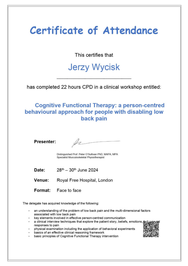 • Cognitive Functional Therapy – Peter O’Sullivan (2024)