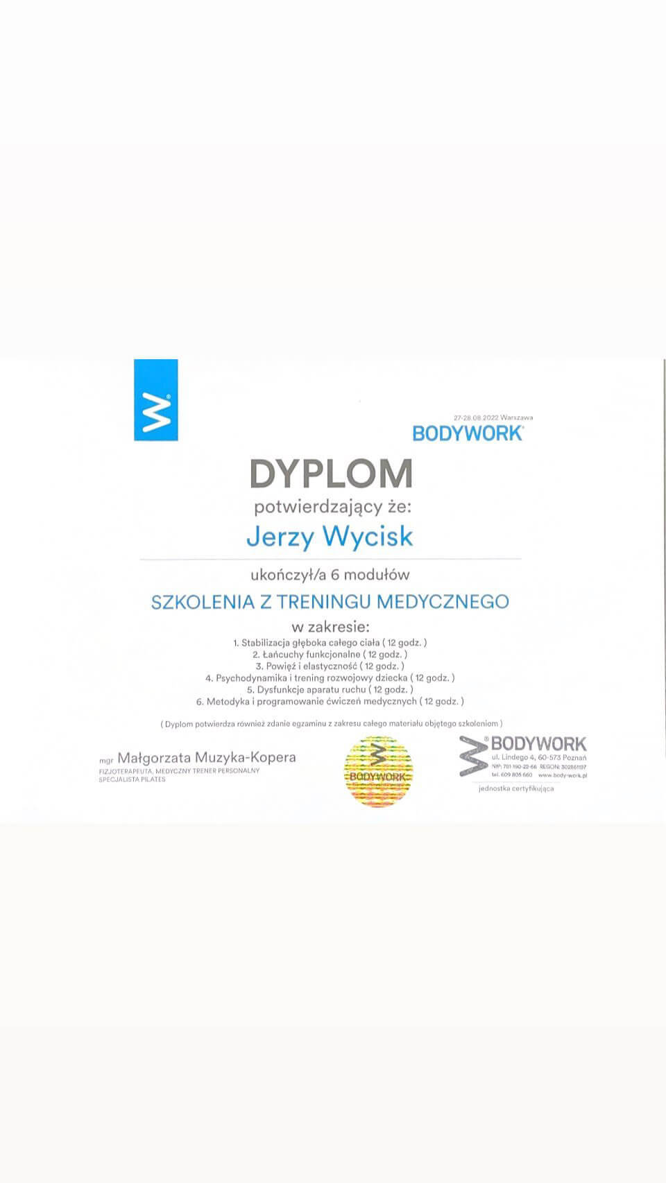 • Trening Medyczny – Bodywork (2022)