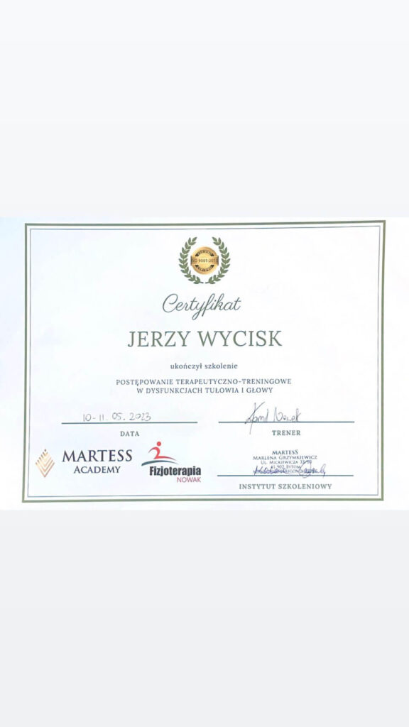 Jestem fizjoterapeutą i trenerem z doświadczeniem w pracy z pacjentami po zabiegach ortopedycznych, piłkarzami Fortuna 1 Ligi oraz zawodnikami sportów walki zdobywającymi medale na Mistrzostwach Polski. Specjalizuję się w rehabilitacji po rekonstrukcji ACL.