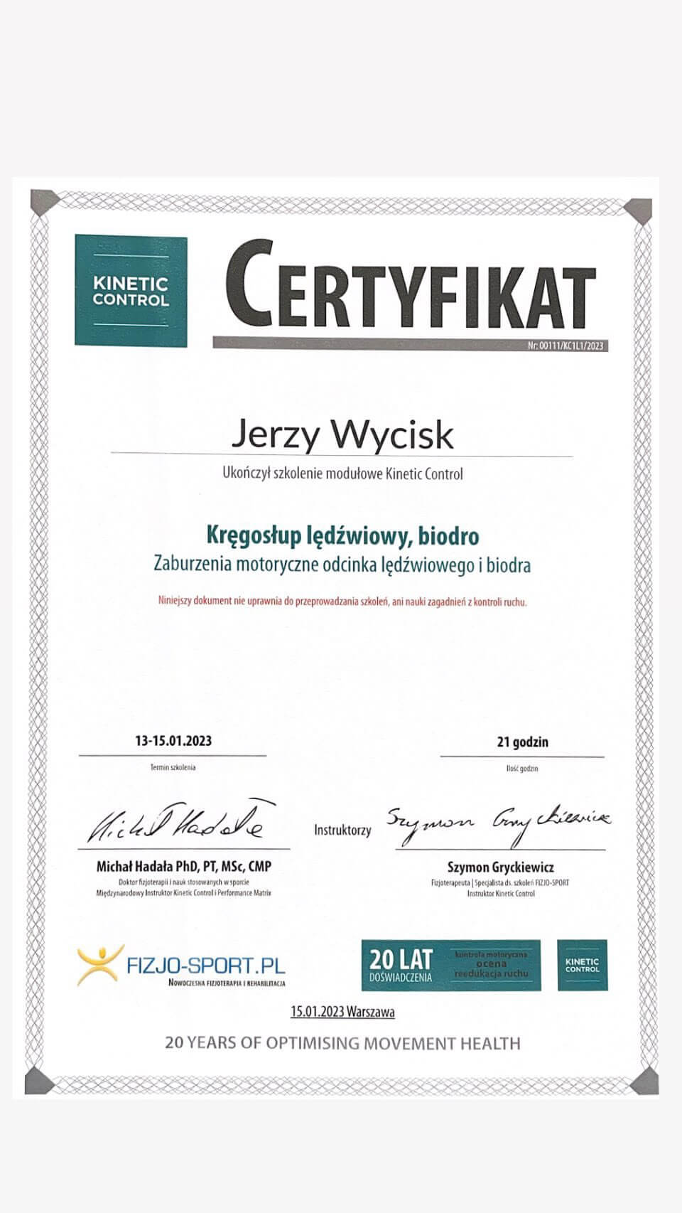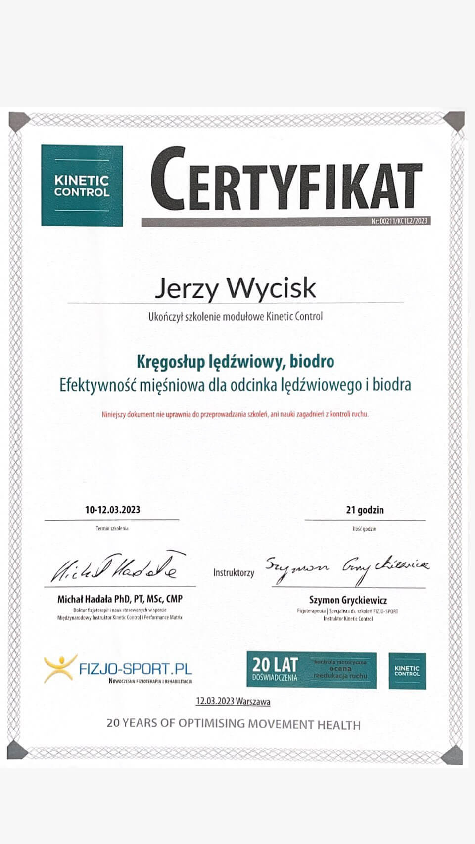 • Kinetic Control: Kręgosłup lędźwiowy i biodro – Michał Hadała, Szymon Gryckiewicz (2023)